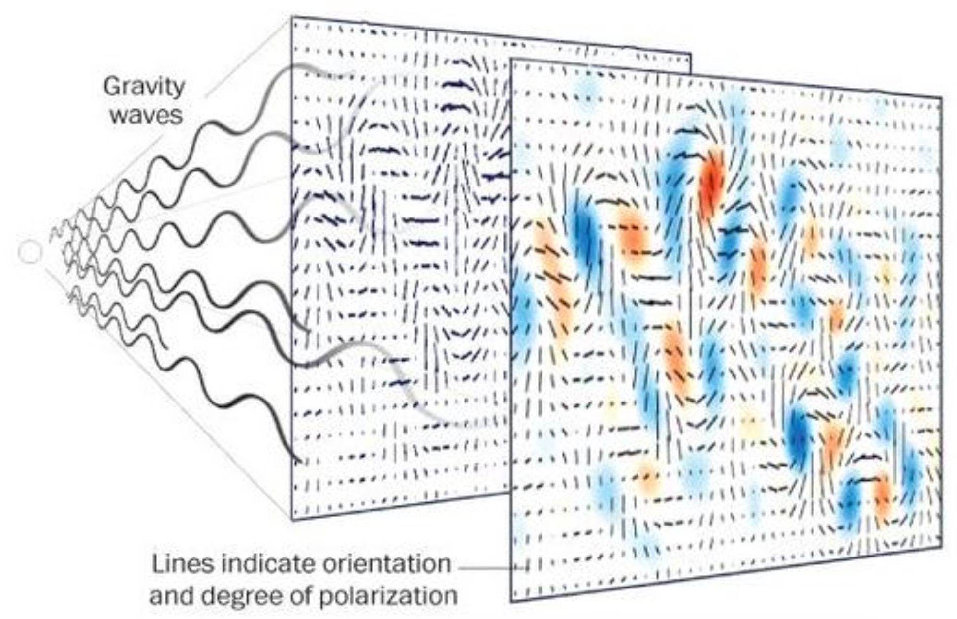 原初引力波(primordial gravitational waves)产生于极早期宇宙。由于宇宙的膨胀,它们的波长被拉长到宇宙尺度。由于引力子自旋为2,它们会在微波背景辐射极化上留下特殊的“指纹”(B-模极化)。